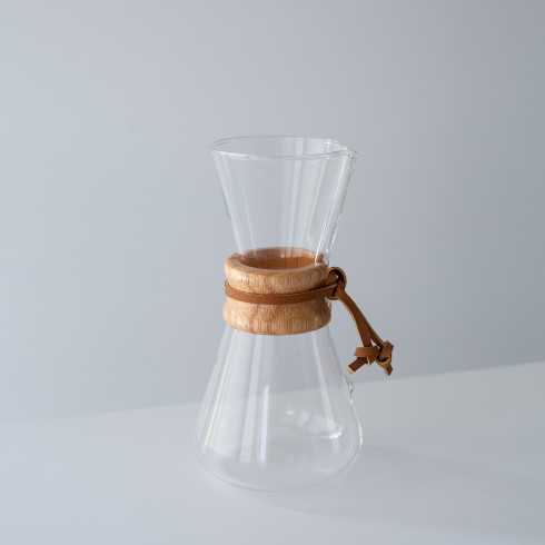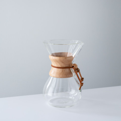 The same elegant glass mugs you can find in our cafes, paired with maple saucers